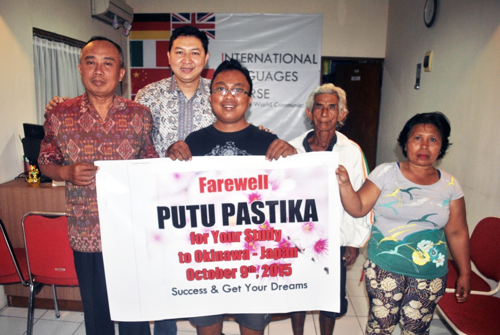 Rasa senang, bangga dan haru meliputi perasaan Ilc Anugerah Denpasar saat mengantar teman kita, Putu Pastika pada Jumat dini hari kemarin untuk berangkat belajar ke Okinawa, Jepang. Putu Pastika adalah siswa Ilc Anugerah Denpasar ke-56, yang telah berangkat ke Okinawa, Jepang. Ilc Anugerah Denpasar dan ICLC telah bekerjasama selama kurang lebih 15 tahun untuk memberikan pendidikan bahasa dan budaya Jepang yang terbaik bagi teman-teman yang semangat belajar sambil mengenal budaya Jepang. Mari sama-sama kita doakan Putu Pastika agar sukses belajar dan mengejar impiannya di Jepang.